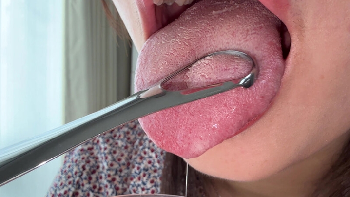 タイトル: 【個人撮影】水月みおの舌ブラシで「汚舌苔」採取