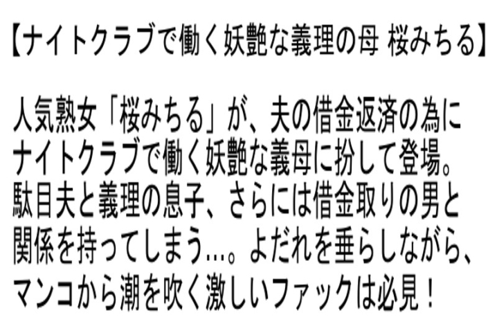 タイトル: 【お得セット】真白希実ちゃん桜みちるちゃんにドッキリを仕掛けて動揺させて潮!失禁!大洪水アクメ・ナイトクラブで働く妖艶な義理の母・近親相姦 姉と弟~ 僕をいたずらに挑発してくる、ふしだらな姉